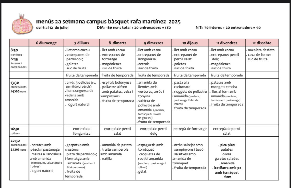 Menú del 2n torn del 17è Campus Rafa